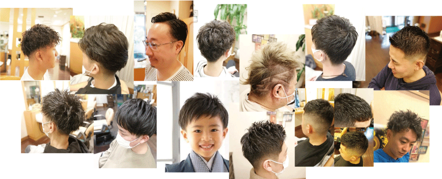 バーバーサロンだからこそできるフェードスタイルやアイロンパーマはもちろん、マッシュや様々なパーマ、キッズカットもたくさんのご注文を頂いております。
