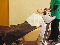 従来のシャンプー設備で前向き、後ろ向きに対応します。