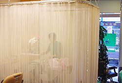 ストリングカーテンによるパーテーションは光を通しやすいため、閉塞感がありません。どうぞ落ち着いた時間を過ごして下さい。
