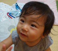 このちょうど一歳のお嬢様は鼻まであった前髪を切って、筆にします。