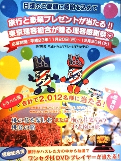 ただ今HAIR春風では、ご来店のお客様に旅行と景品が当たる応募券をお渡ししています。