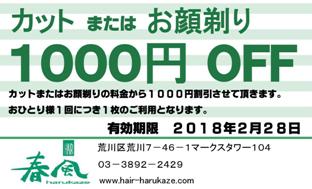 ※今年は右記のカットまたはお顔剃り1000円オフ券を2枚セット×5つ景品として出品しております。