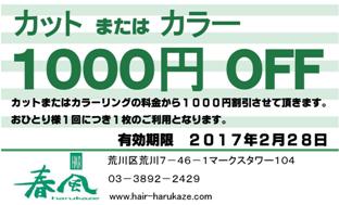 また右記のカットまたはカラー1000円オフ券を10枚、景品として出品しております。